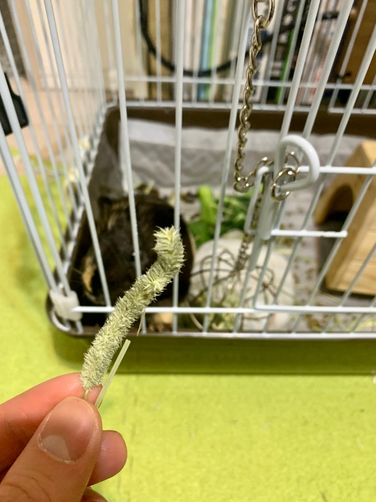 チモシーをガバッと掴むとその中でももふもふした部分を最初に食べるモロコシ